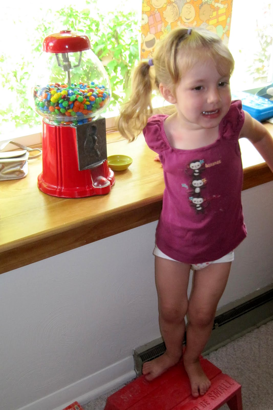 Then Brooklynn discovered the M&M machine in Diana's room so we brought that out.
